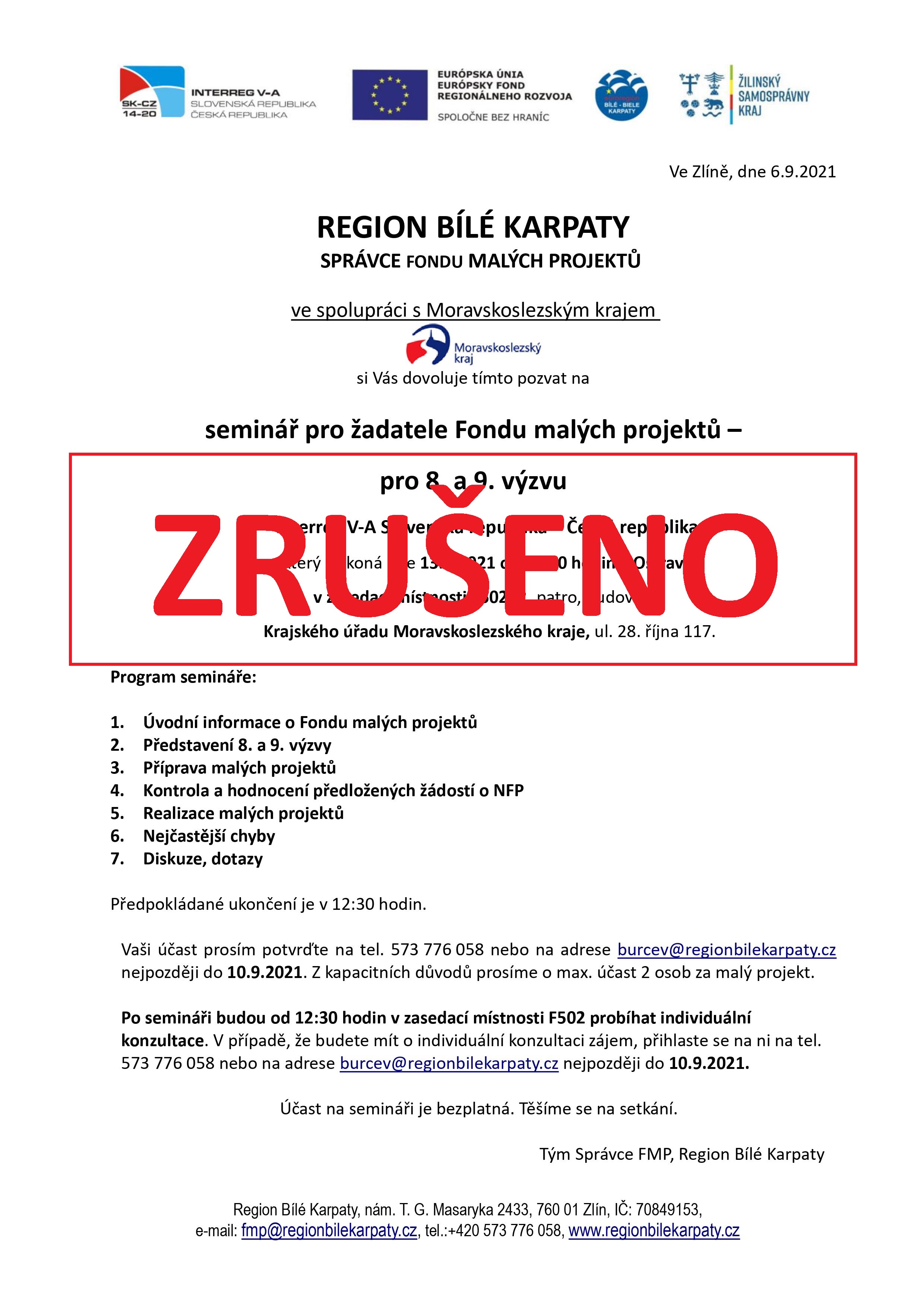 jsme rádi, že jste někteří měli zájem se s námi setkat na fyzickém semináři pro žadatele FMP v Ostravě dne 13.9.2021, ale bohužel kvůli malému zájmu jsme nuceni tento seminář zrušit.
